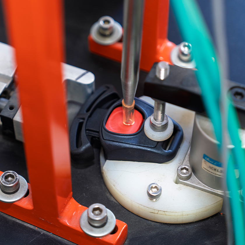 1. Viiden pisteen turvavyö, 2. Sivutörmäyssuojajärjestelmä, 3. Poikkeamisen estävät tukijalat.
